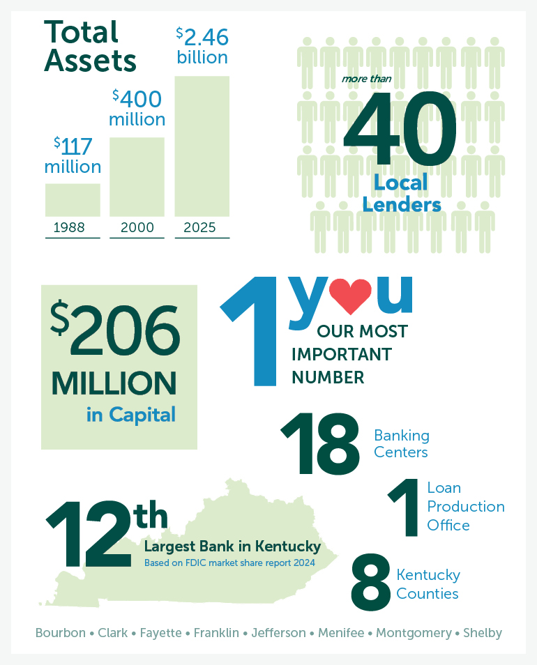 Second Paris branch opens and first in Frankfort, growing to 15 branches in six counties.